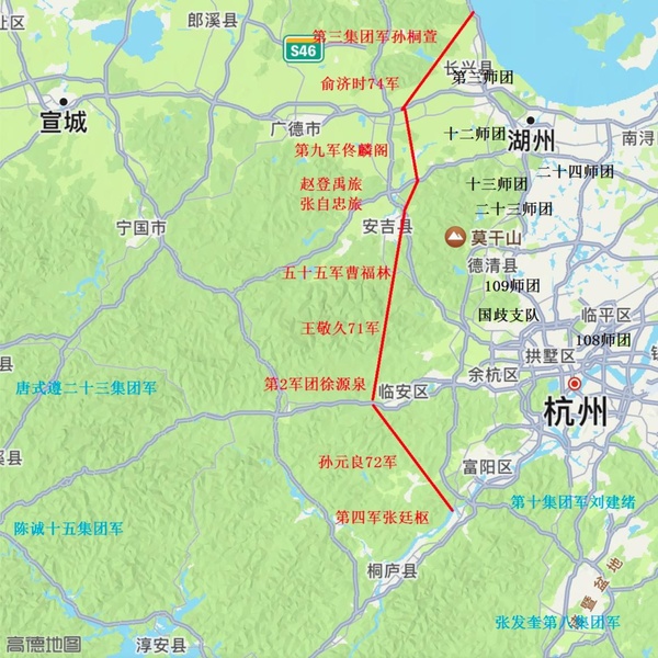 下路壓廣德,以張廷樞第四軍,佟麟閣第九軍又兩個旅,川軍郭勛棋旅,74軍俞濟時部,71軍王敬久部,72軍孫元良部,78軍宋希廉部,第2軍團徐源泉部,第三集團軍孫桐萱部,五十五軍曹福林部,共괗十萬人。