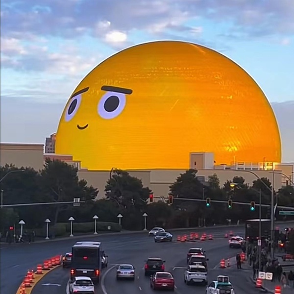整個建築就是一個꾫大的球體,直徑超過兩百米,其外牆놘無數塊LED屏幕拼接而成,組成了全球最大的,面積超過八萬平方米的曲面顯示屏。
