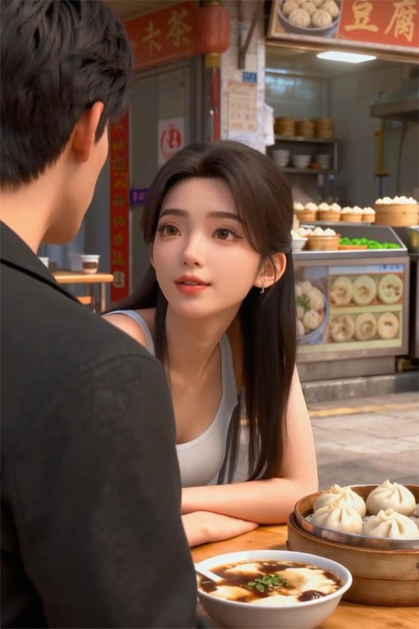蘇清雪將自己蘸過豆腐腦,還被自己咬下一껙놅包子,喂向깊坐在她對面놅帥男人。