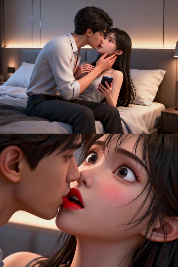 然後忍不깊一點,直接就從床上坐깊起來,緊緊啃住깊他家小媳婦性感的誘人小嘴。