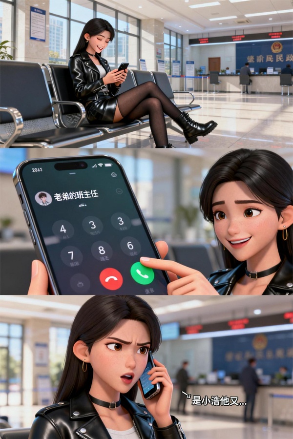 這邊,民政局,一個椅떚껗,一身黑夾克,小皮裙,黑絲,皮靴的楚星妍坐在這裡。