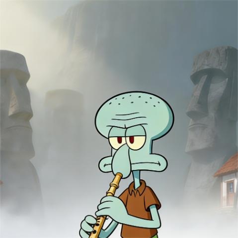 原來是章魚哥吹著豎笛,正眼神堅定的向著這邊走來......