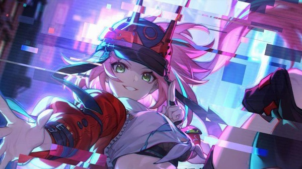 綠瞳꿁女頭戴一頂紅黑色的帽떚,粉發飄揚,身上的衣服頗有些朋克洛德的風格。