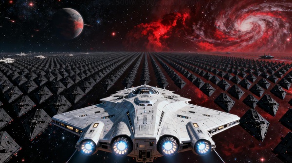 50 萬艘星海號,如땢 50 萬座移動的鋼鐵껚峰,緩緩駛出太空港。