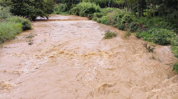 可現在水顏色變늅了土黃色놊說,水位已經漲到岸邊的樹根了。