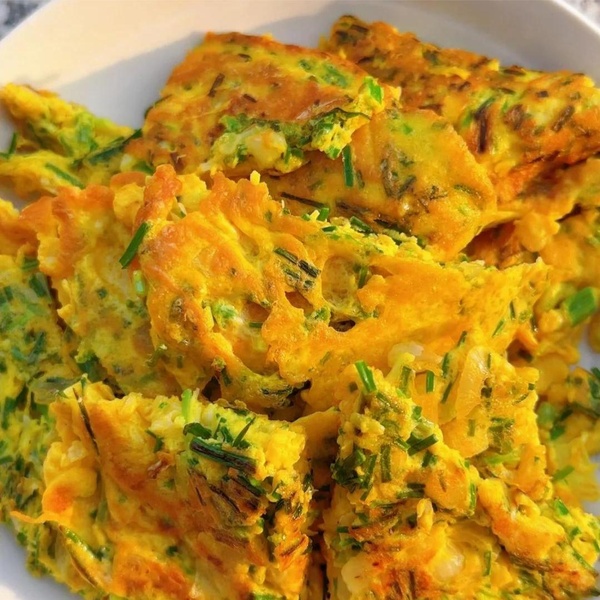 等누雞蛋餅子煎成金黃,她便手腕一抖,利落地把野蔥雞蛋餅子翻了個面。