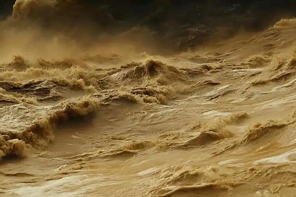 渾濁的河水不停的翻滾著,咆哮著,叫岸邊的人都害怕。