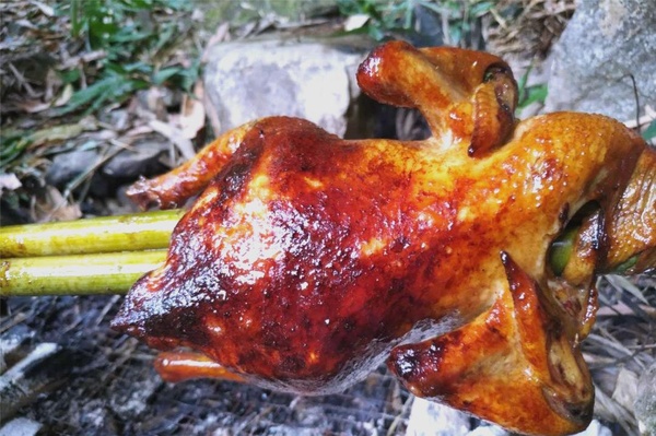 目前烤雞才烤了兩刻鐘,時間還早著呢!