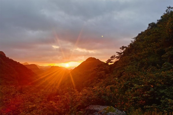 遠方的山邊太陽已經露出亮光了。