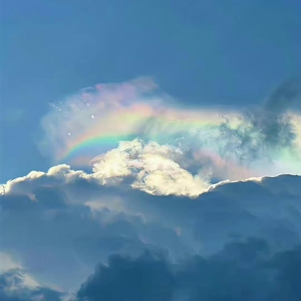 天空果然出現了七色的彩雲。