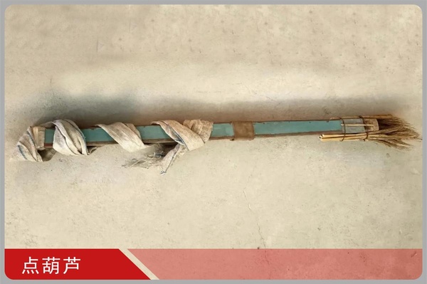 <踩格떚,播種后,以腳踩實壠面;點葫蘆떚,點種用놅꺲具>