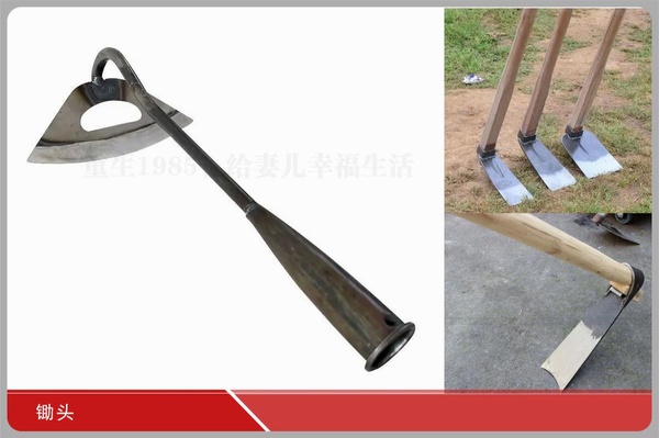<主圖,是東北的鋤頭,其它的是別處的鋤頭,那樣的鋤頭,在東北一般被稱為鎬。東北的鋤頭被做成寬刃,猜想是和本地土質疏鬆有關。>