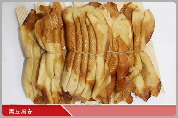 <圖中豆腐卷產自龍江省綏化市。以雞湯加佐料煮制后,以糖煙熏制而成,真的很香……>