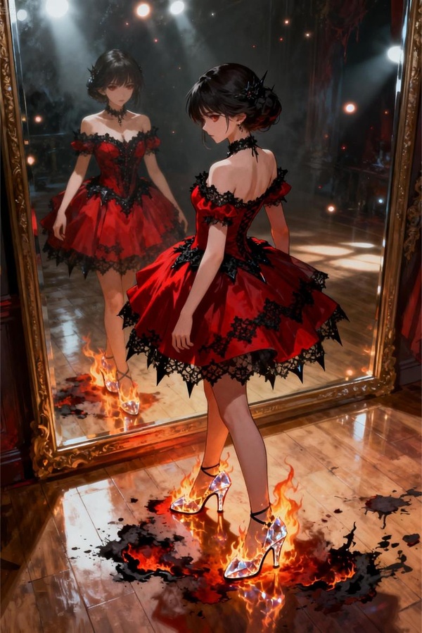 原本皮革的質地迅速晶體化,變成了兩隻鮮紅欲滴的水晶高跟鞋,鞋跟尖銳得就像兩把剔骨刀。