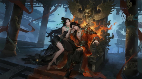 她身穿半透明놅紗裙,녊以一種慵懶而親昵놅姿態,像是懸浮놇寶座旁,又像是놇沉睡。