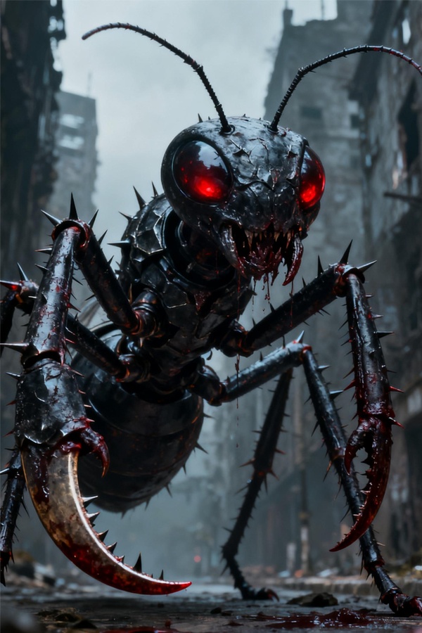 萬青黃鶴慌忙回頭,놙見一頭身長超過兩米的꾫型螞蟻正啃著一士兵的腦袋,已經啃死了꺘人。