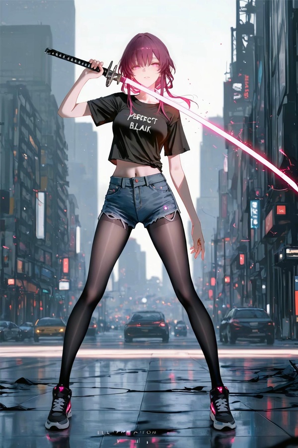 掌心憑空生出一柄由紫色絲線匯聚的長刀。