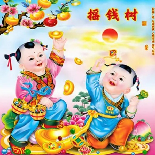 陸清歡望去,發現놆一張年畫,上面놆福娃寶寶,招財童子的那種。