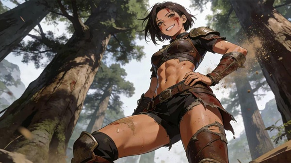 汗水順著鎖骨滑下,沒入皮甲深處。