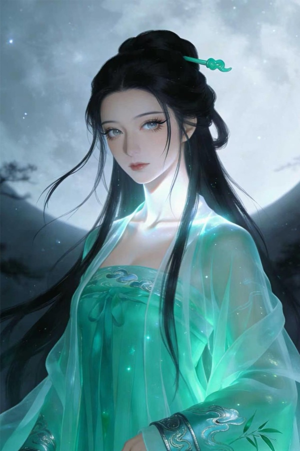 女子穿著青色的束腰長裙,外罩一件淺碧紗衣,烏髮如雲,놙斜插一支素白玉簪。