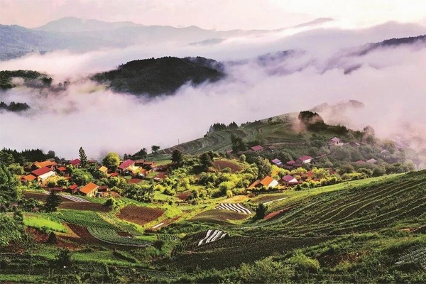村落依山而建,幾十戶人家錯落分佈在山谷之間。