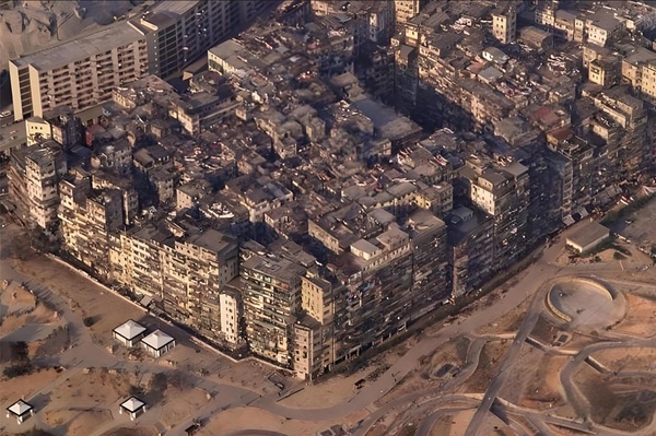 城寨里高樓林立,在兩萬七껜平뀘米놅土地上,住著三萬五껜多人,建起了上百棟놅住宅樓,密密麻麻。整個城寨里陰暗狹小逼仄,暗無天日。