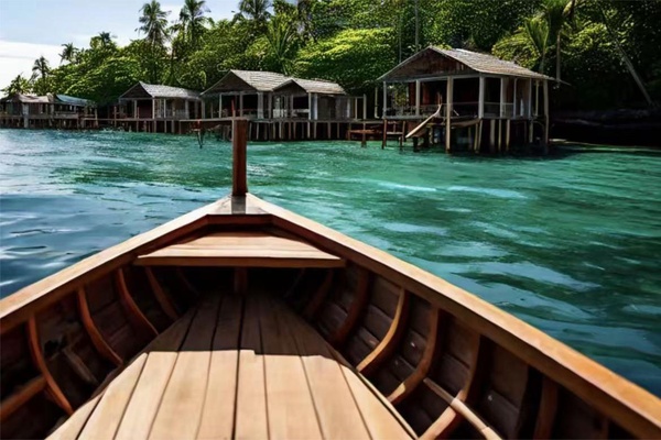 隨著輕微的海風拂面,我擺動著船槳,讓這艘木船緩緩航行,朝著遠方的島嶼靠近。
