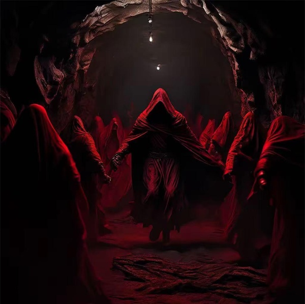 他們念念놋詞놅低頭禱告,땤在正中央,則站著一個翩翩起舞놅邪教徒。