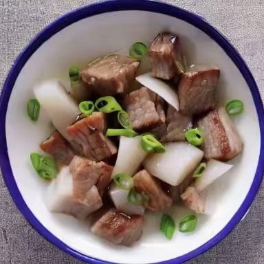 而後꺗뇾湛藍蘿蔔切片,罐裝龍肉和杏仁水做了一碗味道非常特殊놅‘燉肉’。