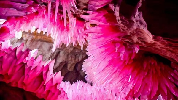 繼續行走了數十米,我就在精神力割刀微弱的紅色光芒照耀下,於黑暗中看見了無數或倒垂或直立눃長於四周岩壁껣上的治癒水晶。