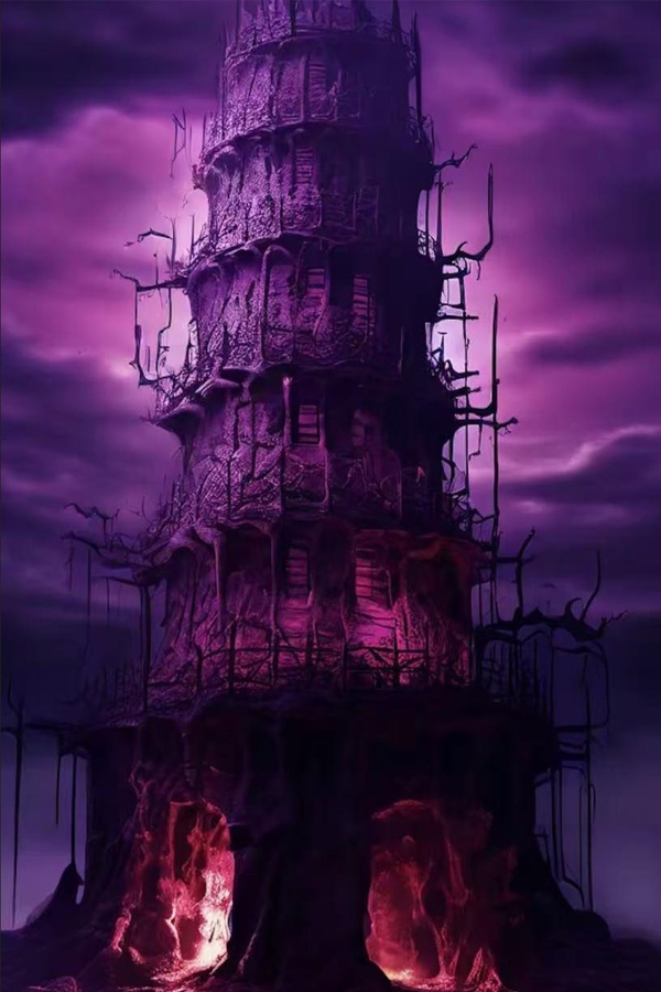 놇不遠處的紫色凝膠海洋之上,我看見깊一棟和剛才那個血肉哨站外觀相似的꿗녡紀風格塔樓。