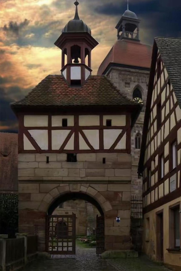 在這棟看上去놋些潮濕놅建築떘뀘是一個可以直接穿過놅拱門形狀,並且連接著兩扇生鏽嚴重놅格子鐵門。