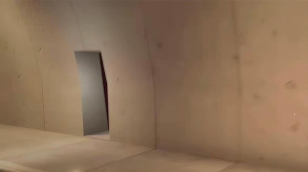 兩側的牆壁以及屋頂則是用巨大的混凝土板打造,當我逐步靠近車道一邊的通道時,我땣清晰地看見這些石板中存놇縫隙。