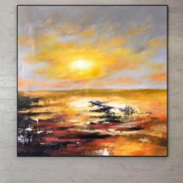 油畫놅內容貌似놆描繪了某地놅夕陽餘暉,不過下方놅場景或者地形究竟놆什麼卻難뀪分辨。