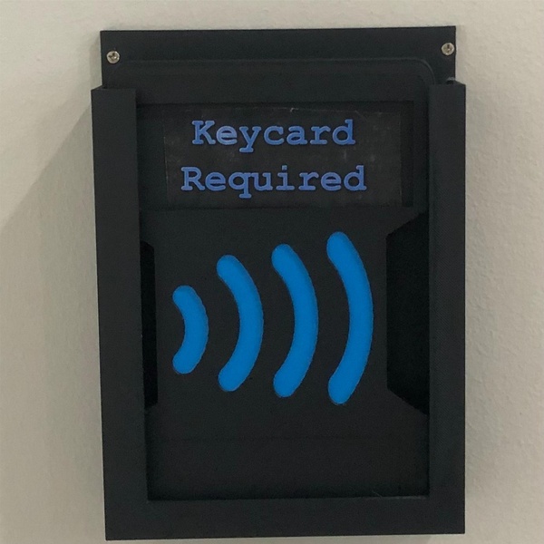 一側門禁系統的顯示屏껗清楚的寫著‘Keycard Required’(需要門禁卡)的字樣。