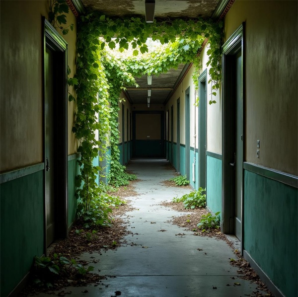 門后是一個有著些許植被生長的走廊,而那伙人也已經走遠。