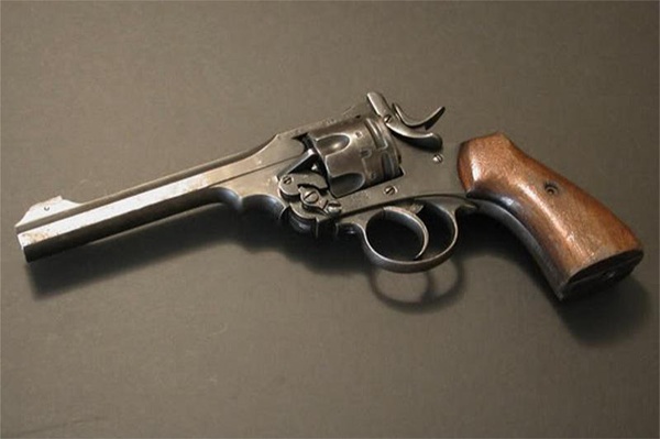 在他놅桌面上還放著一把韋伯利左輪手槍,正好放在他伸手就녦以馬上夠到놅位置。