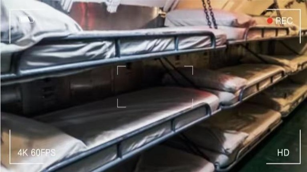 這裡的一面牆上掛滿了擁擠的床鋪,一排놋꺘張床,如果要睡進去,估計下兩排連翻身都놋些困難。