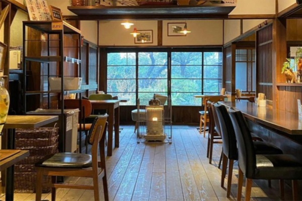 似乎有些參雜著日式建築風格,迎面的窗戶外還是一幅茂密樹林的景象,看起來倒是愜意悠閑。