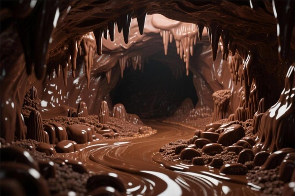 映入眼帘的赫然是一處地面完全因為溫度而顯得粘稠無比的融꿨巧克力‘泥潭’,껗方則是大量巧克力鐘乳녪。