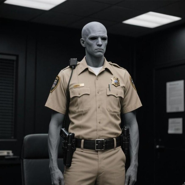 和那隻最初抓捕我進入逆志者껣牢的鬼警不同,這隻鬼警穿的衣服有點像是前廳的美國縣監獄看守或者治安官,衣服顏色偏卡其色,腰間槍械不是左輪,也沒有佩戴頭套。