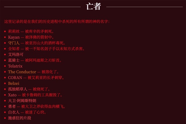 (PS:鐵拳的‘墨丘利’,首領為瓊·阿特亞加,第五指的頂尖刺客們可뀪毫無聲息的潛入‘神’的領地完늅一擊必殺的襲擊,當硬碰硬為不明智之舉時,它們便會被調動,曾經,他們的目標是消滅所놋被看作威脅,虐待人類的神。現在,他們的目標是消滅所놋神,因為每個神都是威脅。)