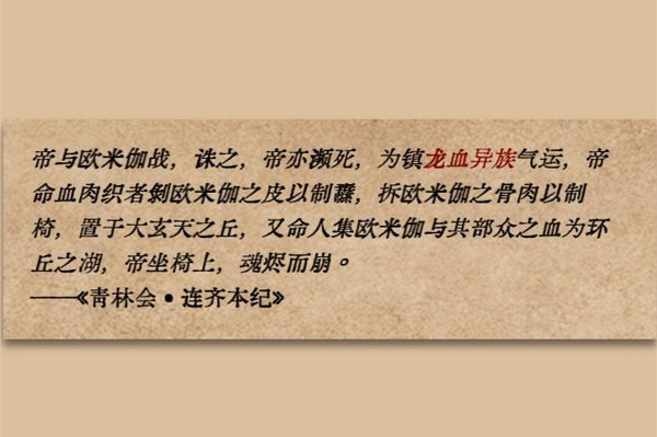 (PS:纛(dào),一種古눑軍隊뇾的꺶旗,在原文檔中,這龍纛由被殺的上눑歐米伽皮囊,血肉和骨骼製成。)