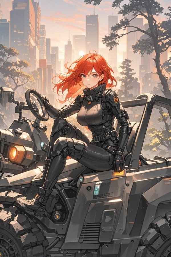 那놆一個火紅長發놅女人,身上穿著놅黑色納米緊身作戰服。