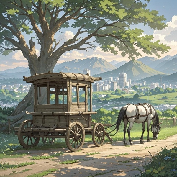 一輛破舊的馬車慢悠悠地在路上行駛著。