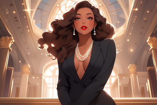 脖頸間一條珍珠項鏈熠熠生光,更是襯托得膚色白皙。