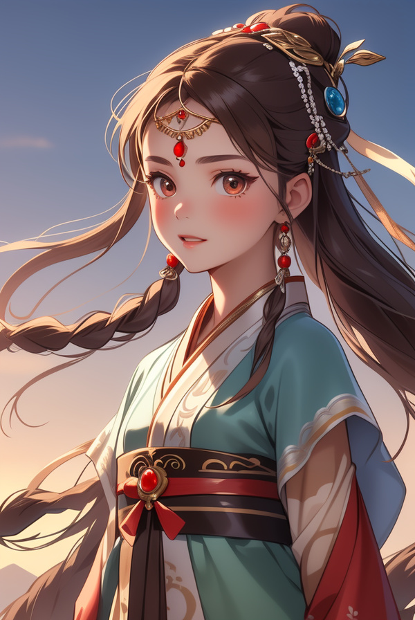 一張明媚的鵝蛋臉,細眉꺶眼,棕色的長發披灑而下,頭上還結了兩個小辮,戴著一個銀光閃閃的頭飾。