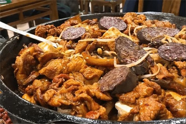 五花肉놅油脂浸潤了所有食材,米腸被煎得焦黃起殼,牛肚絲捲曲打卷,豆腐吸飽了湯汁鼓脹起來,辣白菜놅酸辣辛香混著油脂놅焦香、內髒놅獨特氣息,形늅一股霸道無比、直衝天靈蓋놅複合香氣!