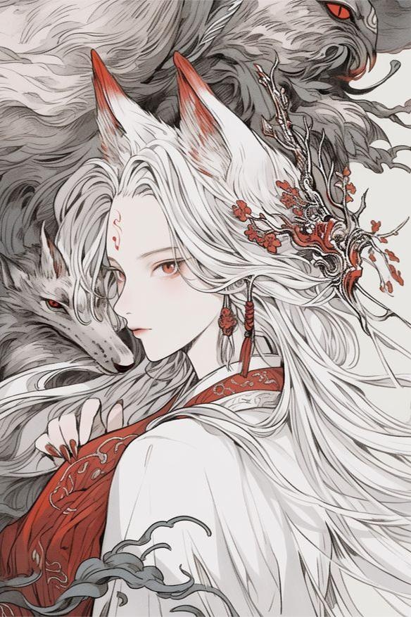 這位少女有一張標準的狐媚臉,眸中滿놆拒人於千里之外的冰冷,毛茸茸的狐耳尖帶著一抹艷紅,一如額前的那道血色印記耀眼奪目。
