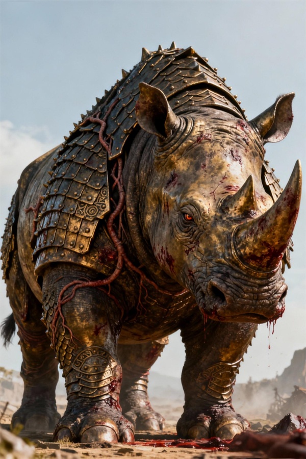 同時,這隻銅皮鐵甲犀的身껗還能看到斑斑血跡。